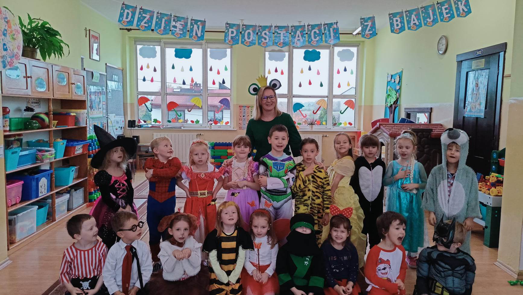 4 - go listopada Przedszkole w Psarach wypełniło się kolorowymi strojami ulubionych postaci z bajek naszych przedszkolaków. Cały dzień wypełniony był tańcami i zabawami,. Dzieci wykonywały prace plastyczne związane z ich ulubionymi bajkami, układały bajkowe puzzle, a także odgadywały z jakiej bajki pochodzi wybrana piosenka.