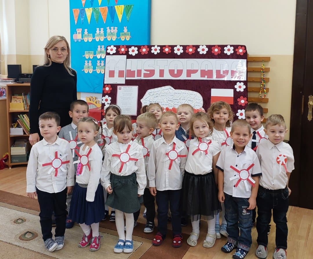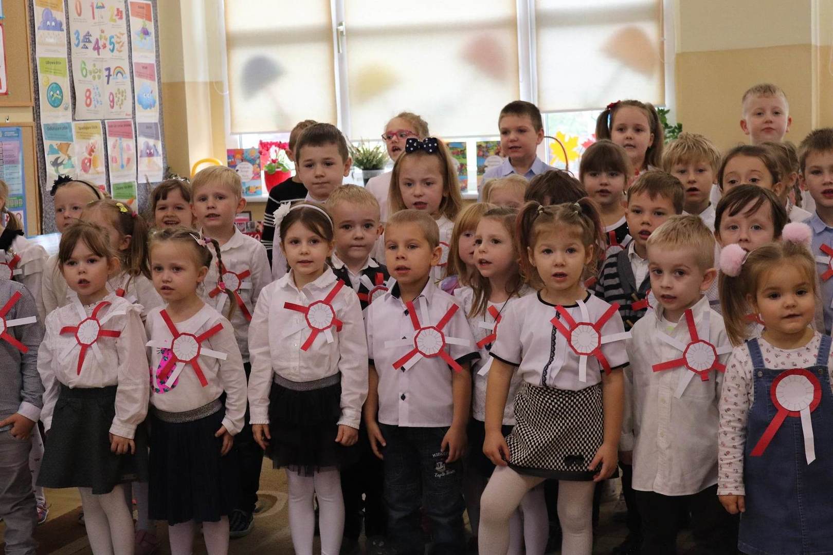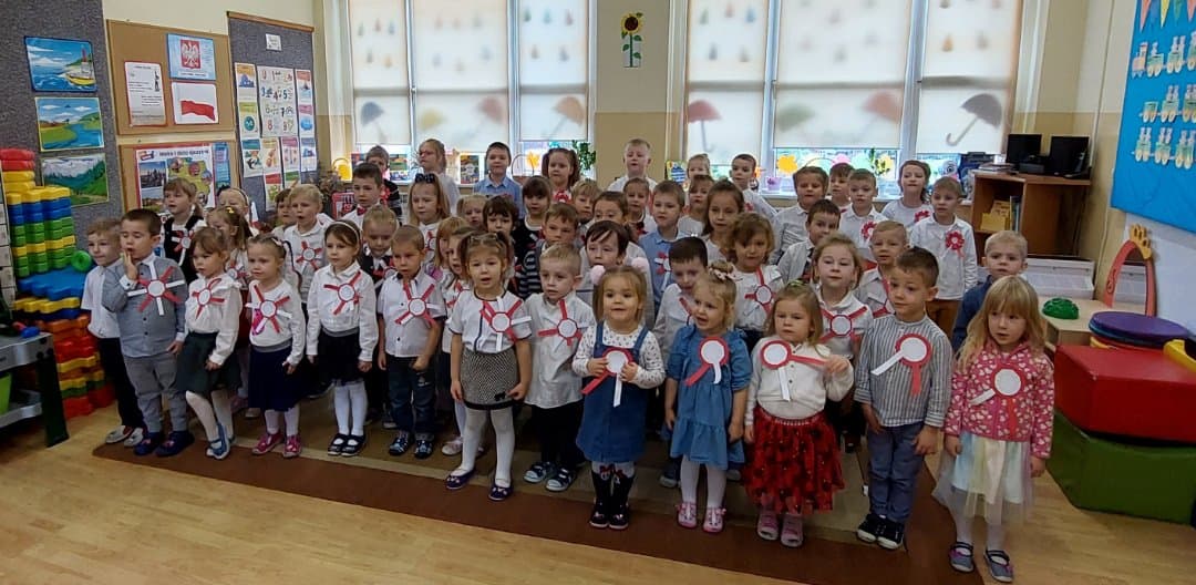 10 listopada 2022 r. równo o 11:11 wszystkie dzieci z naszego przedszkola odśpiewały wspólnie Hymn Polski "Mazurek Dąbrowskiego", włączając się tym samym w akcję Ministerstwa Edukacji i Nauki „Szkoła do hymnu”. Aby przygotować się do tego święta i świadomie w nim uczestniczyć, dzieci, podczas zajęć, rozmawiały o tym, czym jest patriotyzm, ojczyzna, poznawały wiadomości o naszym kraju i jego historii. Wszystkie grupy przygotowały na tę akcję kotyliony, które ozdabiały ich białe koszule podczas wspólnego śpiewania.