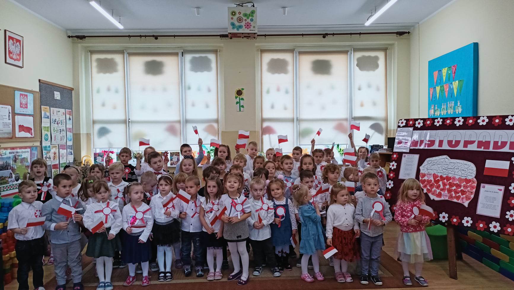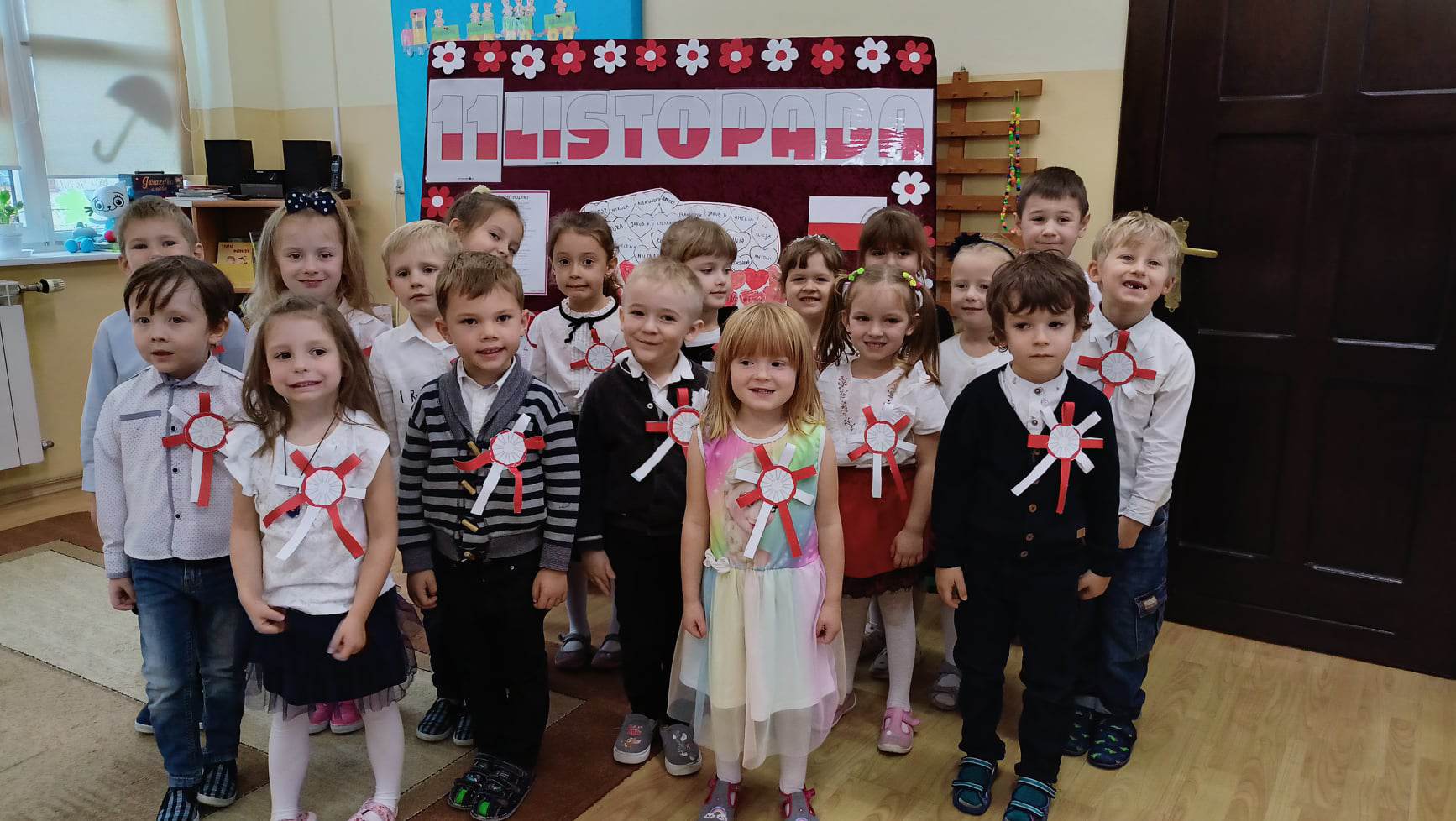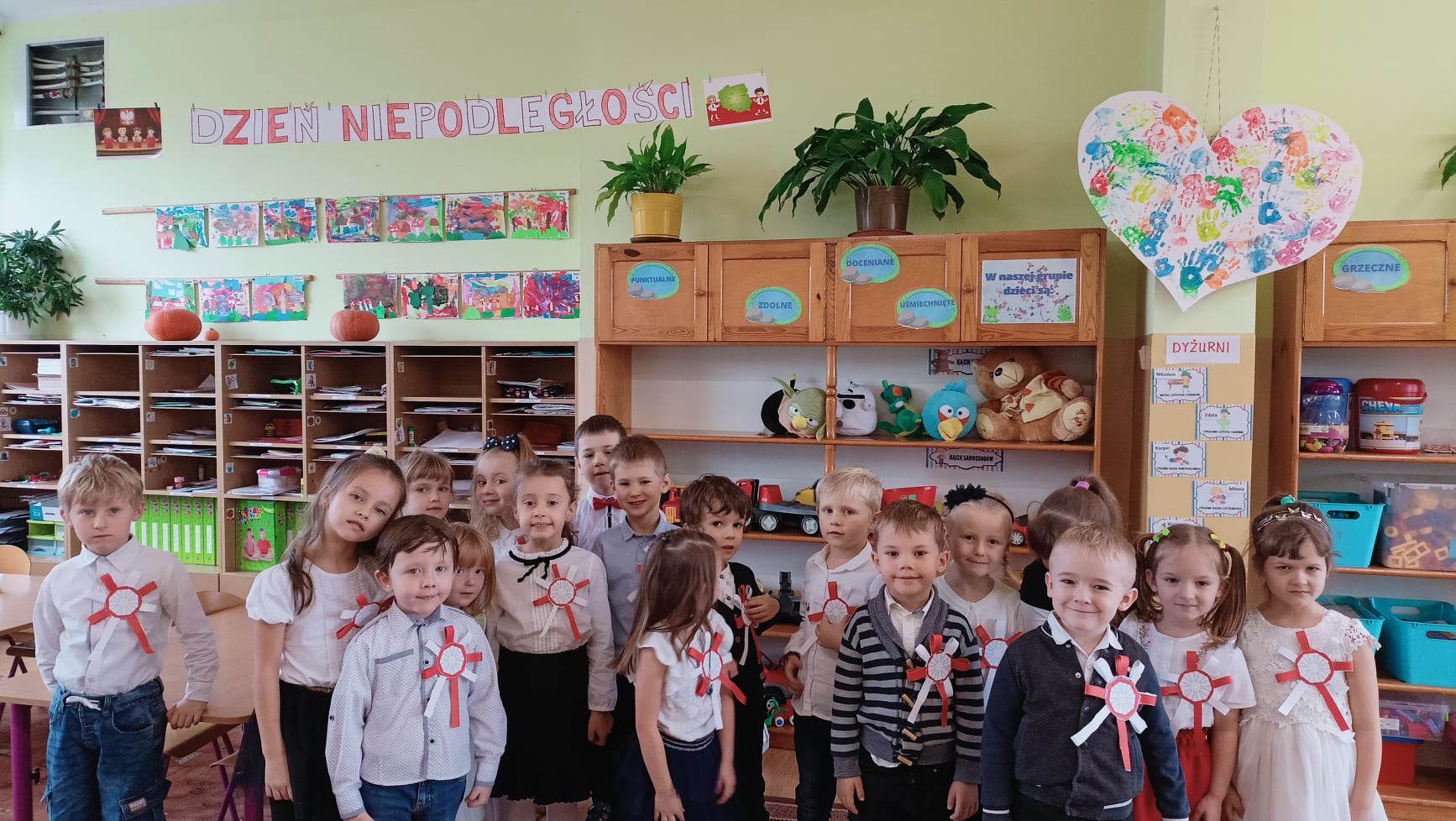 10 listopada 2022 r. równo o 11:11 wszystkie dzieci z naszego przedszkola odśpiewały wspólnie Hymn Polski "Mazurek Dąbrowskiego", włączając się tym samym w akcję Ministerstwa Edukacji i Nauki „Szkoła do hymnu”. Aby przygotować się do tego święta i świadomie w nim uczestniczyć, dzieci, podczas zajęć, rozmawiały o tym, czym jest patriotyzm, ojczyzna, poznawały wiadomości o naszym kraju i jego historii. Wszystkie grupy przygotowały na tę akcję kotyliony, które ozdabiały ich białe koszule podczas wspólnego śpiewania.