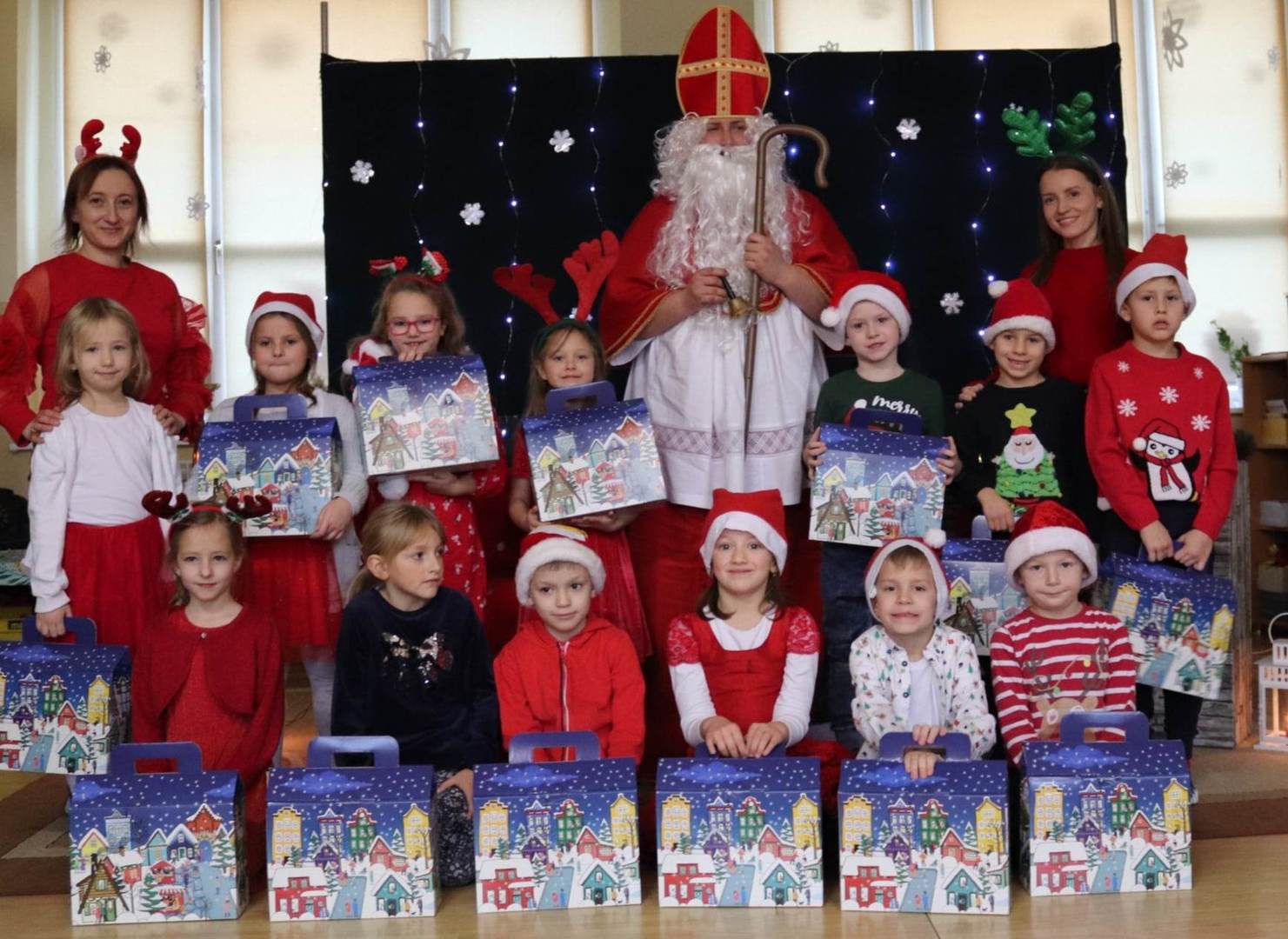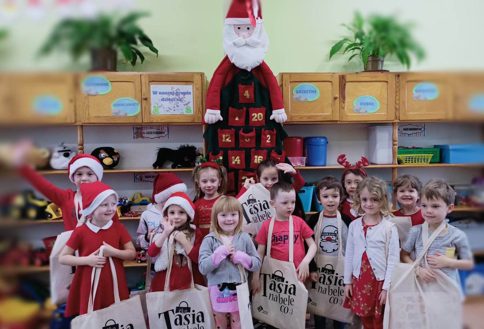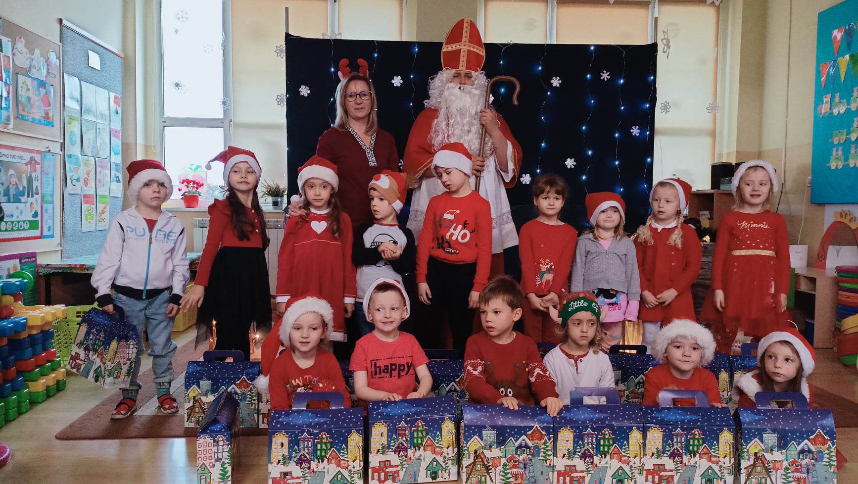 Tak nasi przedszkolacy 6 grudnia ubrani w mikołajkowe czapeczki, rogi reniferów, przywoływali długo oczekiwanego gościa.
