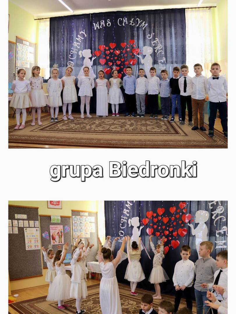 Każda grupa w innym dniu zaprezentowała swój program artystyczny, przygotowany pod czujnym okiem Pań Wychowawczyń. Dzieci śpiewały piosenki, tańczyły, recytowały wiersze, grały na instrumentach. Następnie wręczyły własnoręcznie wykonane upominki. Nie zabrakło uścisków, życzeń, a także słodkiego poczęstunku. Były to wyjątkowy czas, pełen uśmiechu, radości i miłości.