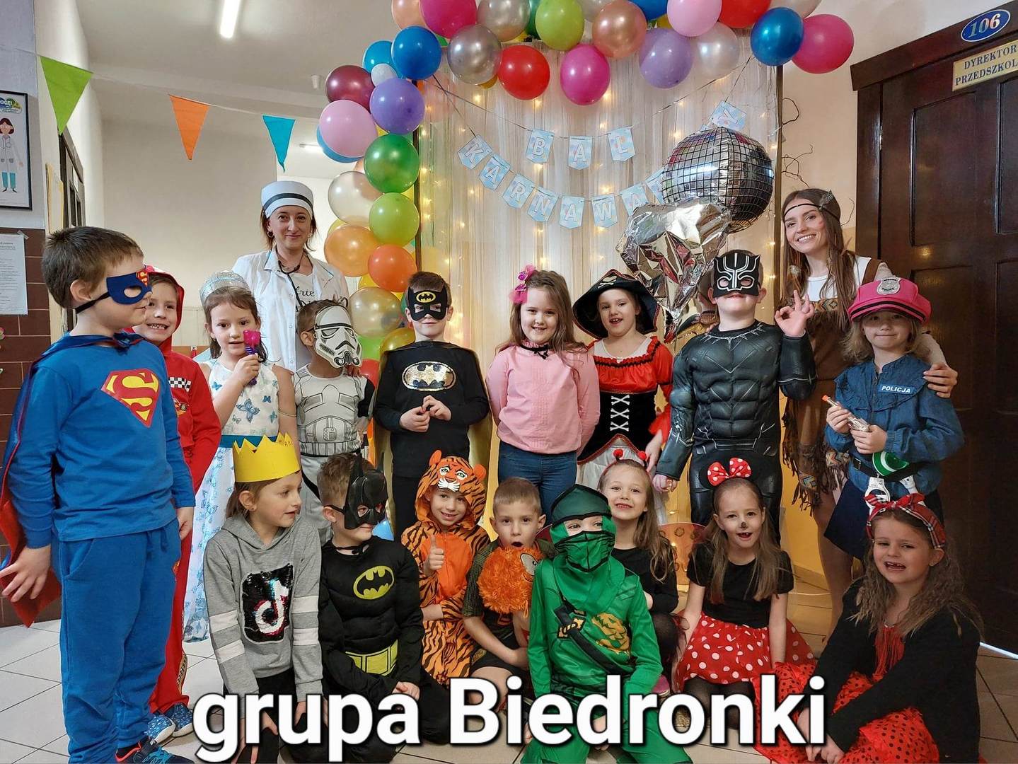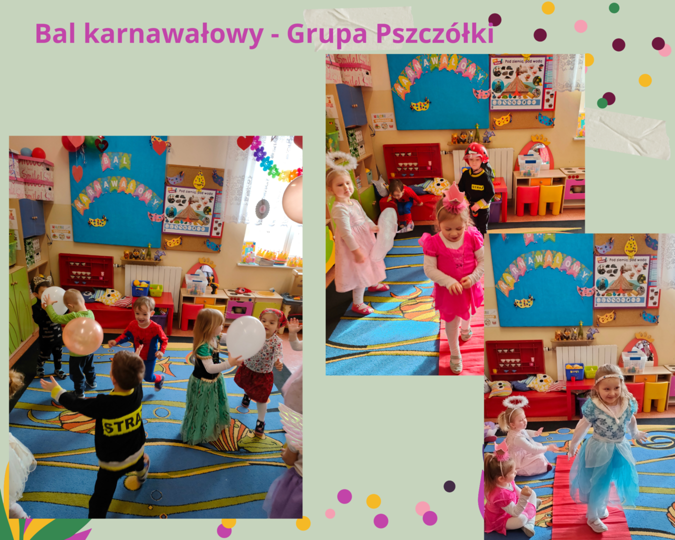 Był to długo wyczekiwany przez każdego przedszkolaka dzień. Sale wypełniły się wróżkami, księżniczkami, policjantami i wieloma innymi bajkowymi postaciami. Pierwsze rytmy wesołej muzyki sprawiły, że wszyscy z wielką ochotą rozpoczęli pląsy i tańce.