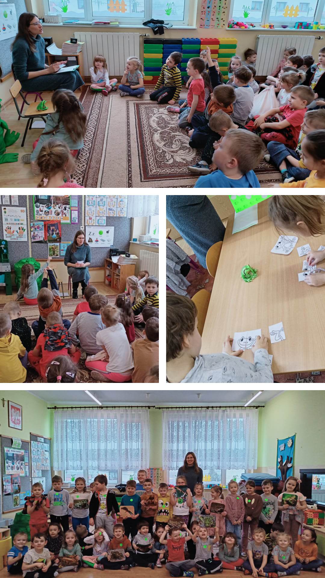 9 marca nasze przedszkole odwiedziła przedstawicielka Ośrodka Edukacyjnego Zespołu Parków Krajobrazowych Województwa Śląskiego w Kalinie, która przeprowadziła zajęcia edukacyjne na temat płazów pt. „Płazy - wyjątkowe zwierzęta obszarów wodno-błotnych”. Dzieci poznały różne rodzaje żab i ropuch oraz cykl rozwojowy żaby. Przedszkolacy dowiedzieli się, że płazy są bardzo pożyteczne dla człowieka, ponieważ zjadają wiele szkodników.