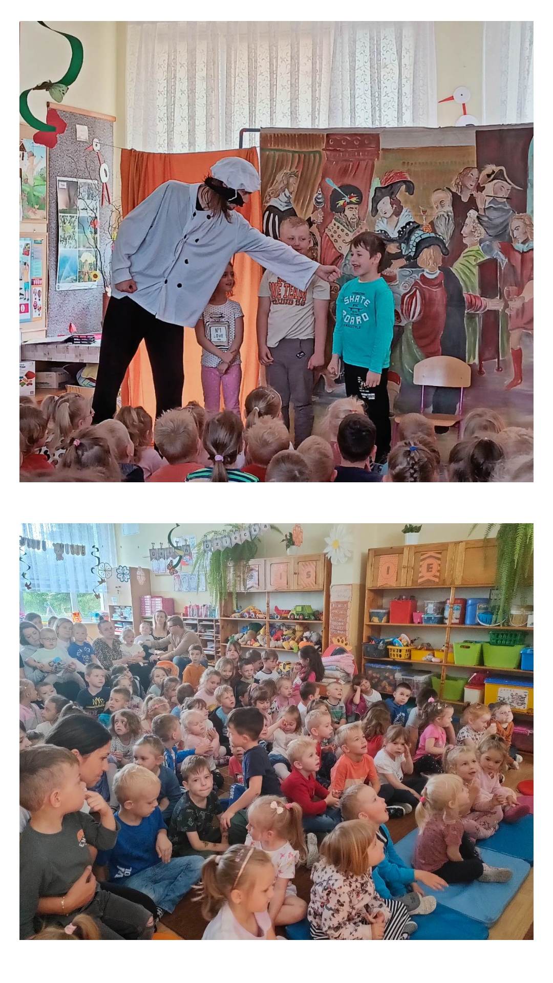 Nasi Goście, po spektaklu, rozeszli się do swoich przyszłych sal, gdzie czekały na nich warsztaty plastyczne, zabawy organizowane przez Panie Nauczycielki oraz zabawy swobodne, podczas których mieli okazję do zapoznania się z kolegami.