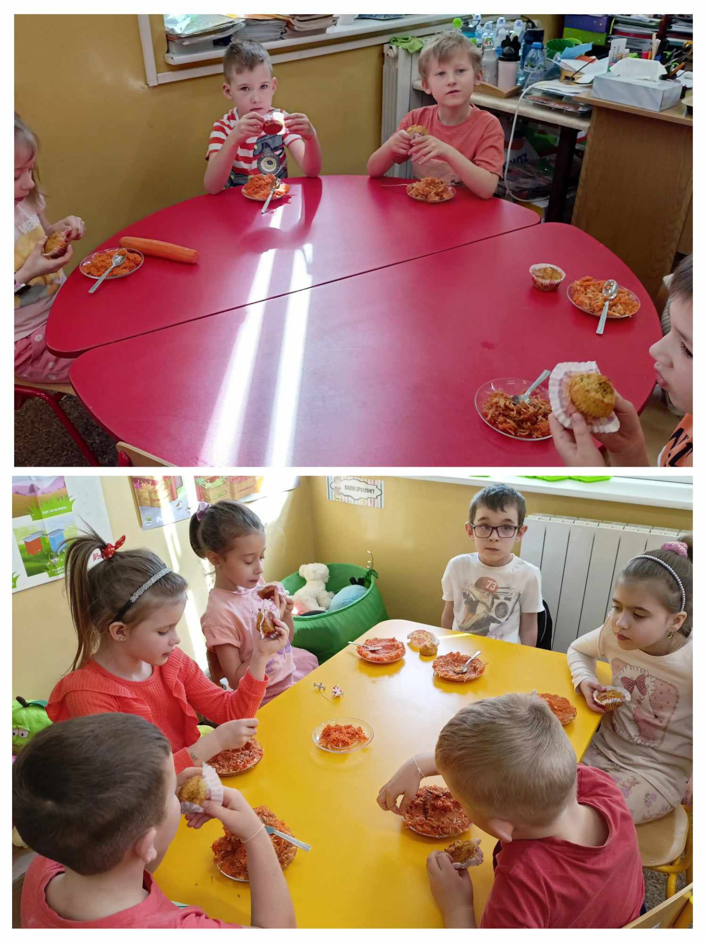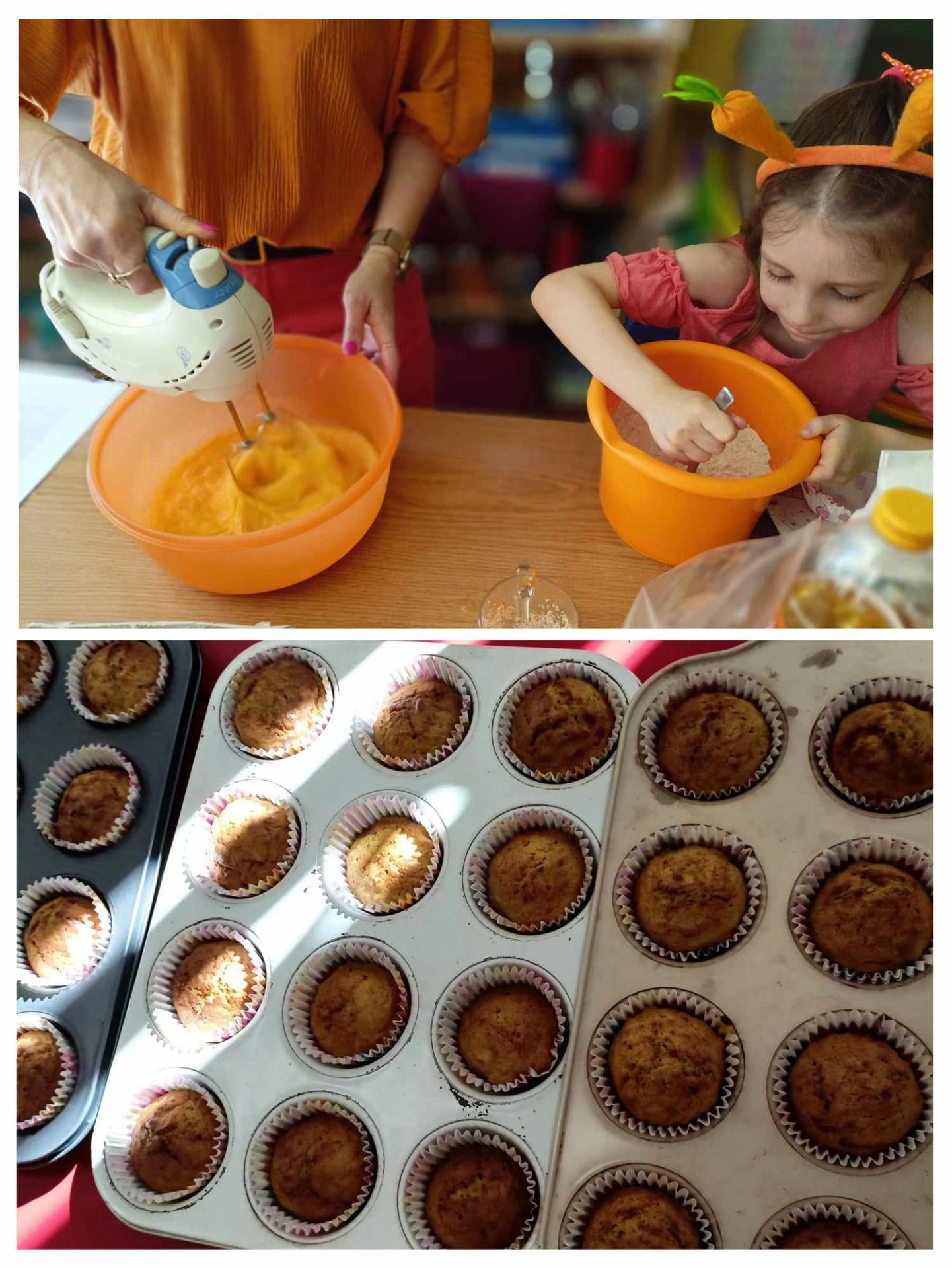 馃Przedszkolaki wykona艂y zadanie na 5, czego efektem by艂a potarta marchewka i jab艂ko, kt贸re by艂y g艂贸wnymi sk艂adnikami sur贸wki. Marchew zosta艂a te偶 wykorzystana do zrobienia ciasta, bo jak si臋 okaza艂o - warzywa s膮 pyszne r贸wnie偶 w postaci babeczek.馃ェ
