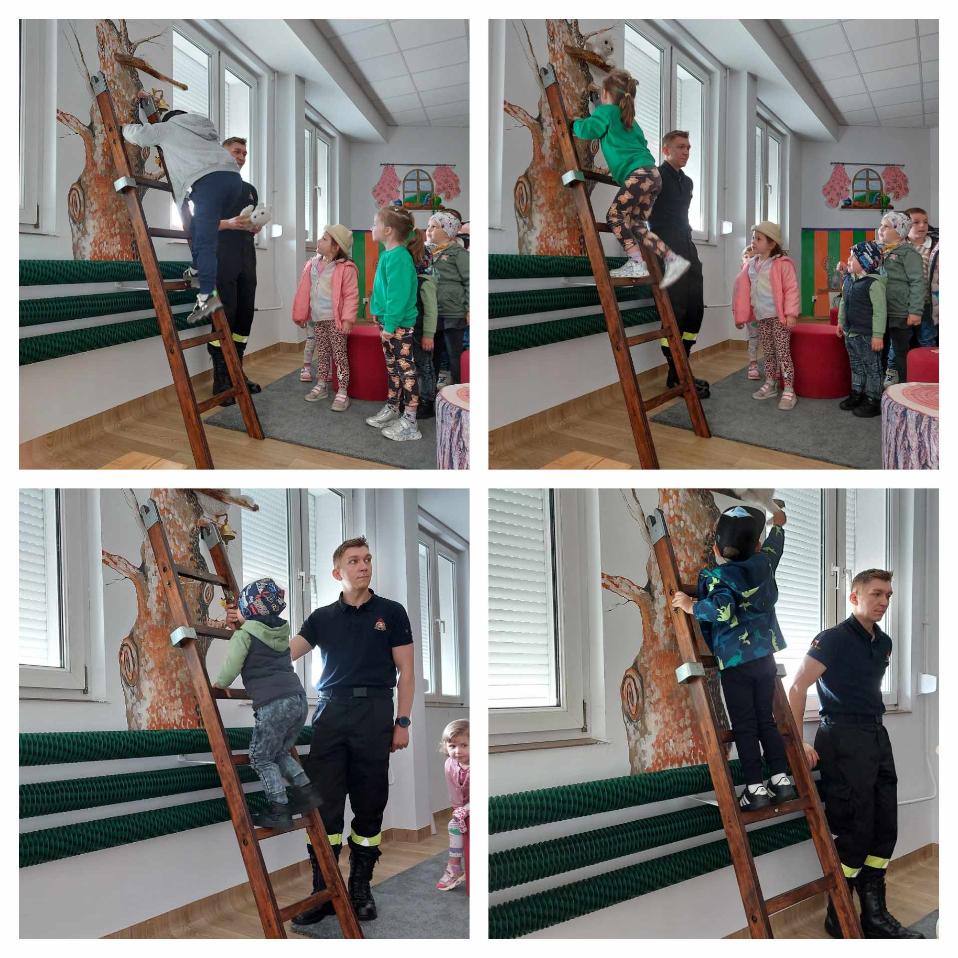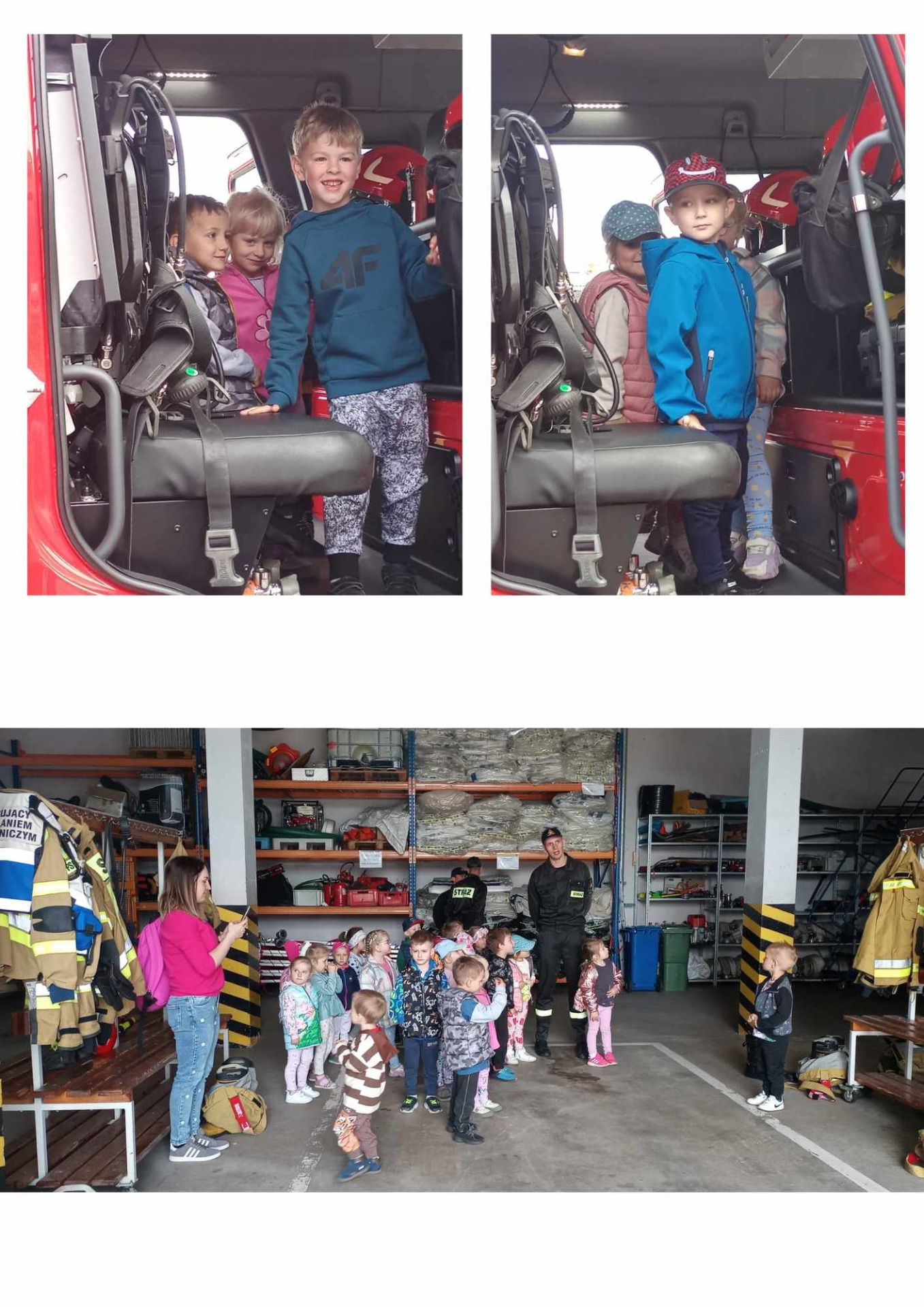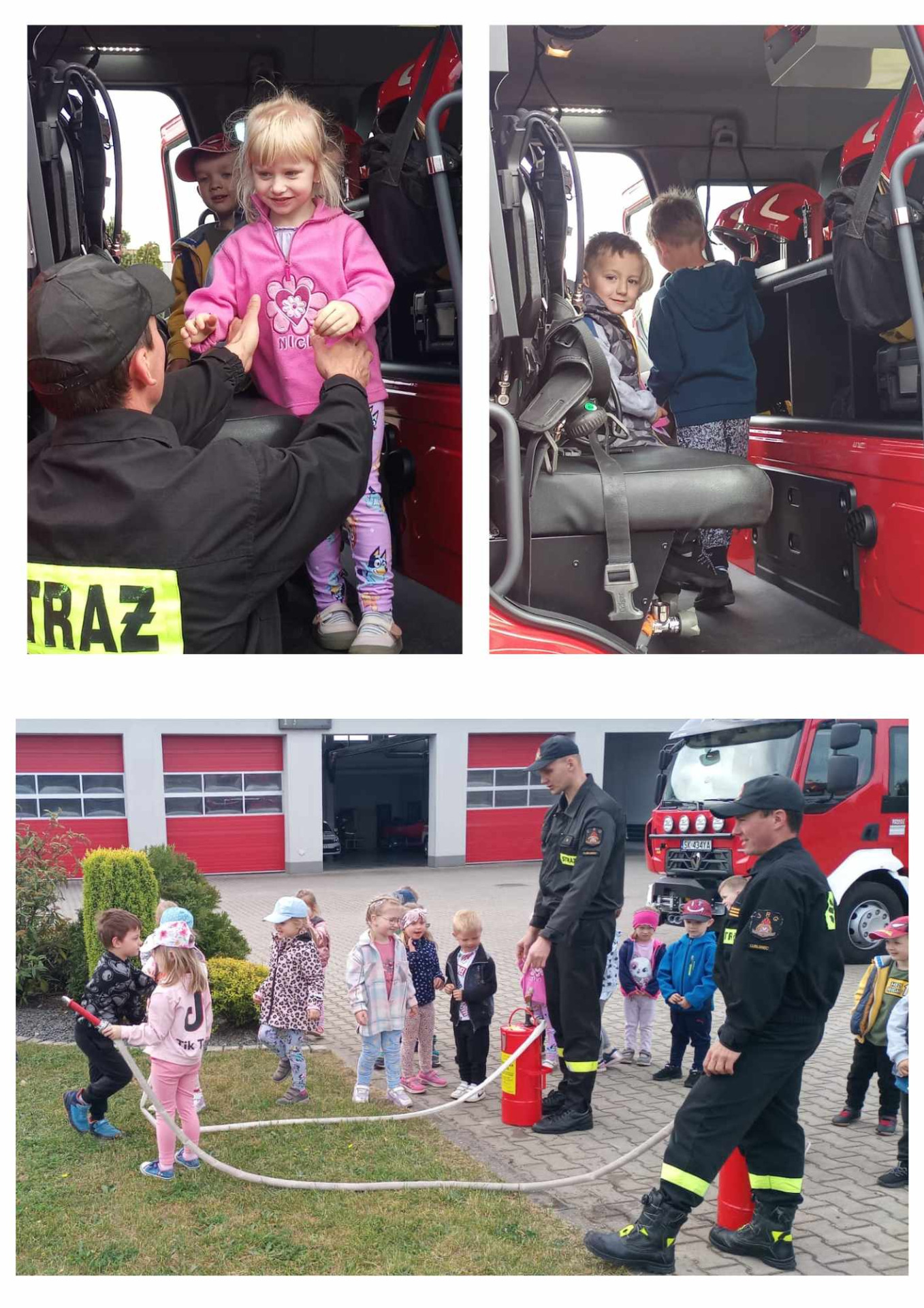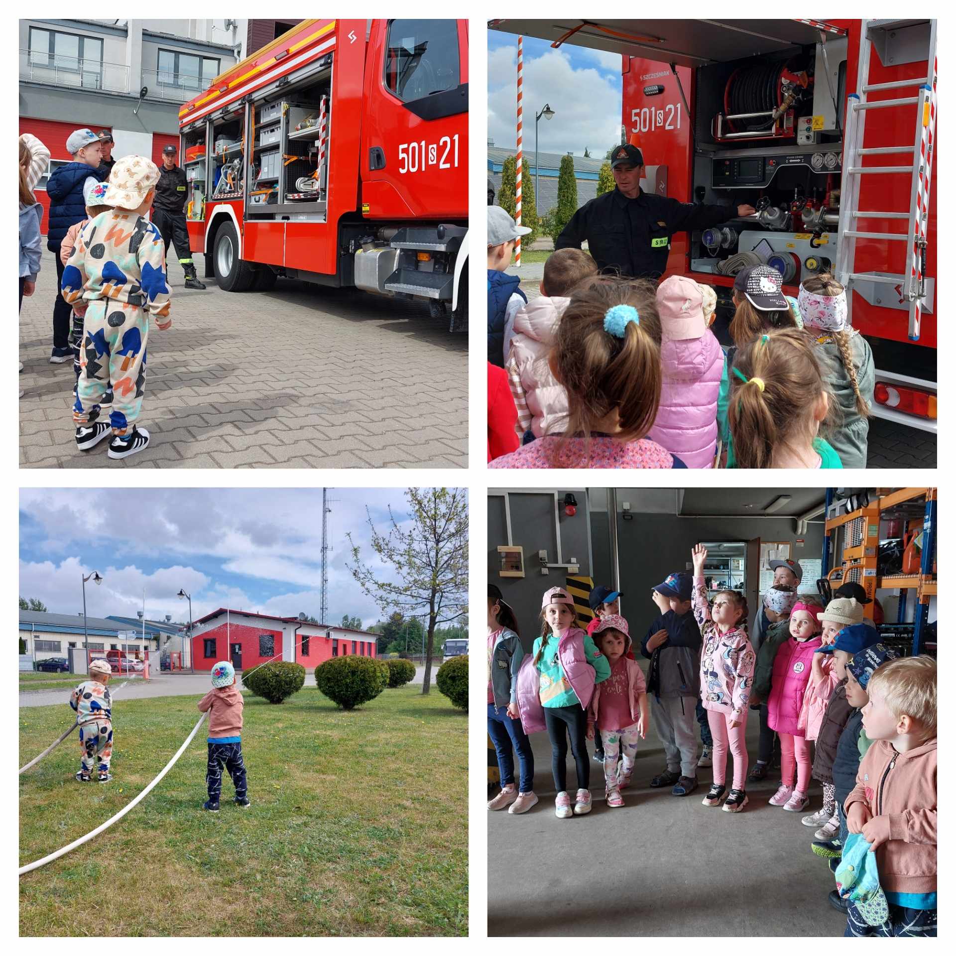 Najmłodsi mieli okazję z bliska zobaczyć wozy bojowe oraz ich wyposażenie służące nie tylko do gaszenia pożarów, ale także do niesienia pomocy poszkodowanym w wypadkach drogowych. Ta wizyta wywołała wiele pozytywnych emocji wśród dzieci, które były aktywne i zaangażowane podczas zajęć.