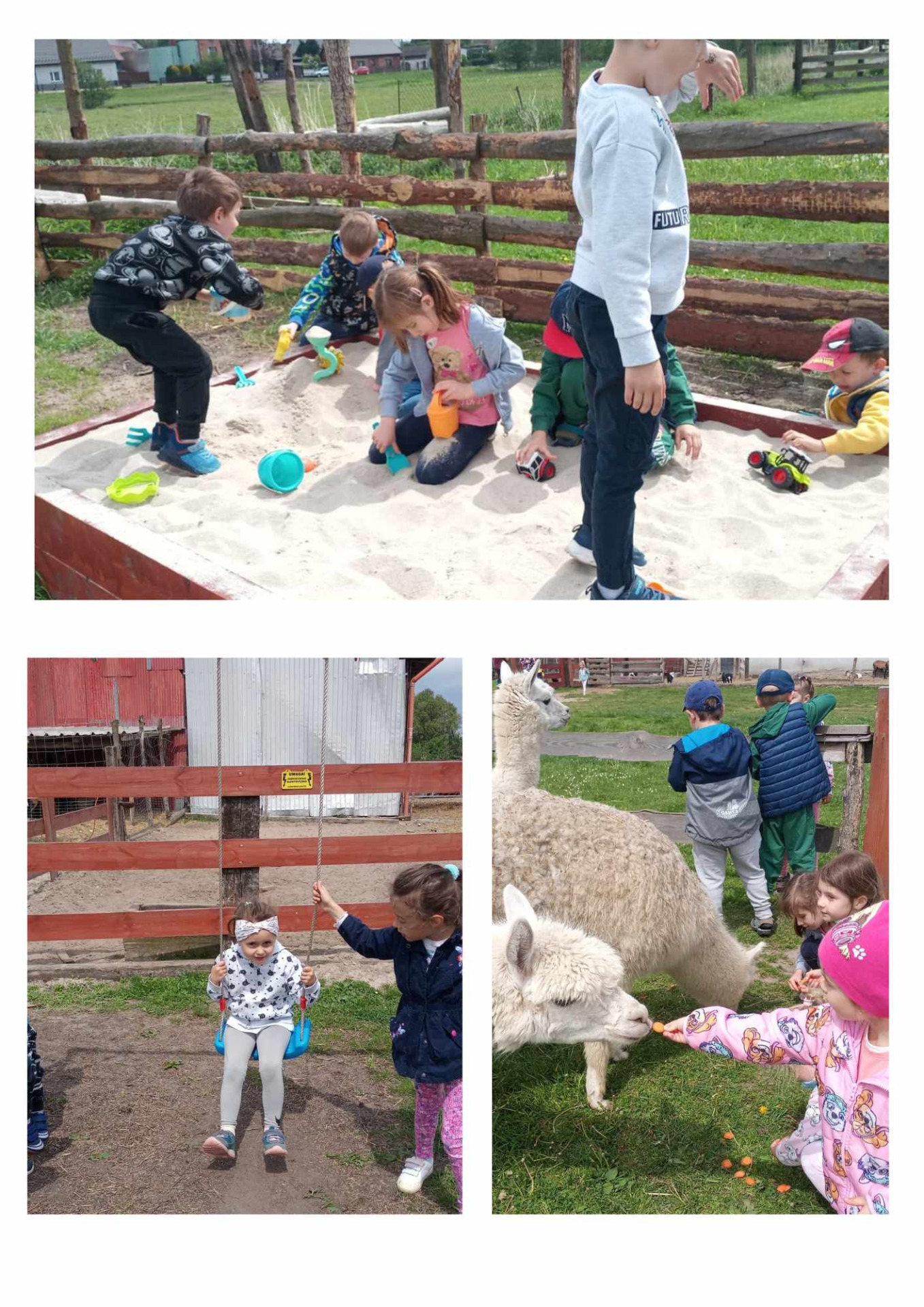 🟥Drugim punktem wycieczki była wizyta w Ranczu Z Alpakami. Dzieci miały okazję poznać, pogłaskać i nakarmić alpaki, a na koniec skorzystać z dmuchanych atrakcji. 🦙🛝