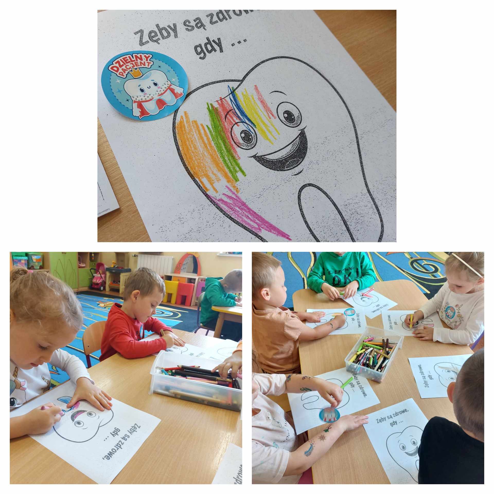 鈿笍Na zako艅czenie dzieci otrzyma艂y kolorowanki z臋b贸w oraz naklejki dzielnego pacjenta. Teraz ju偶 wszyscy wiedz膮, jak nale偶y dba膰 o z臋by i jak je my膰.