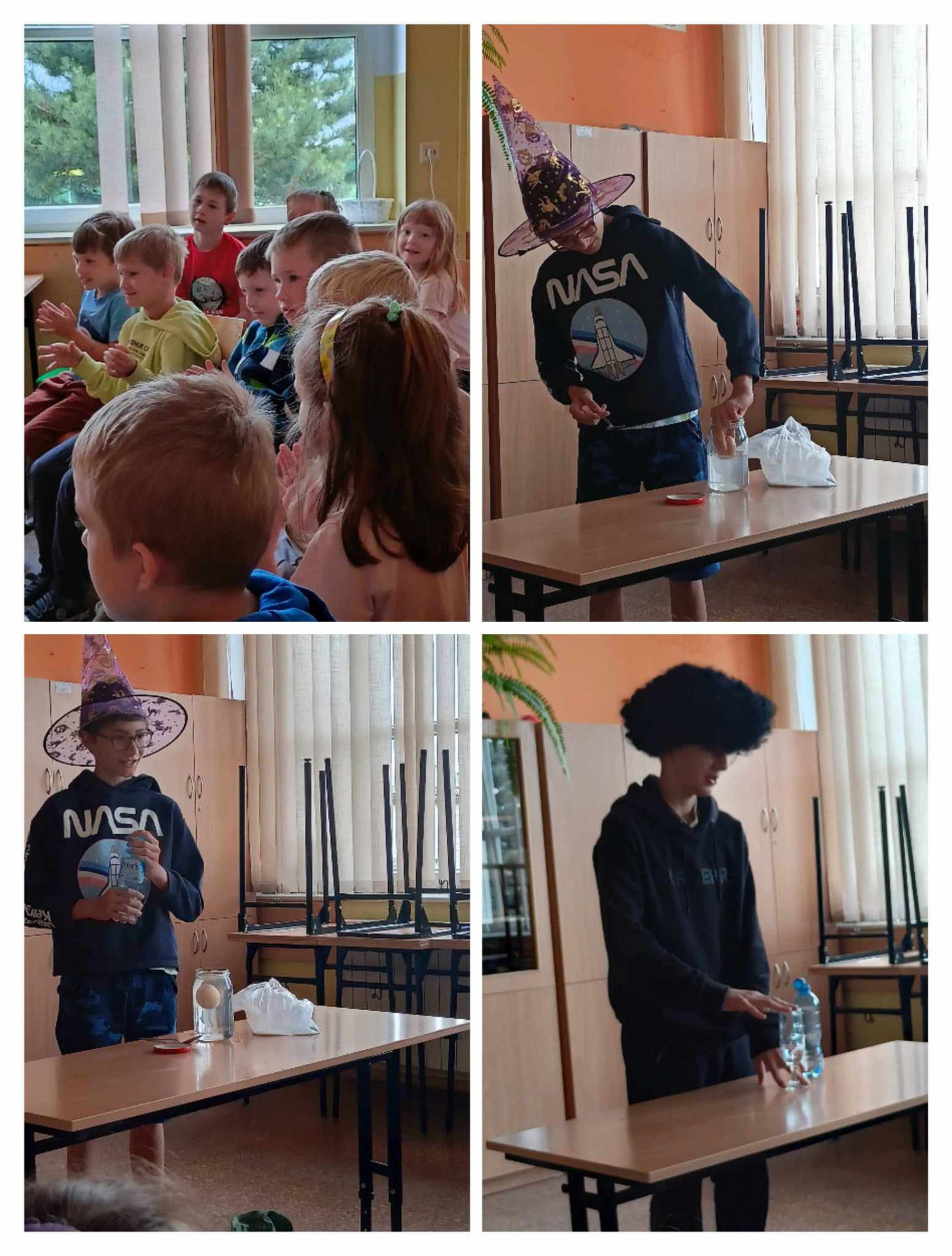 鉁旓笍13 czerwca starszacy zostali zaproszeni przez uczni贸w klasy si贸dmej Szko艂y Podstawowej im. Jana Paw艂a II w Psarach na specjalnie przygotowany pokaz do艣wiadcze艅 fizycznych.