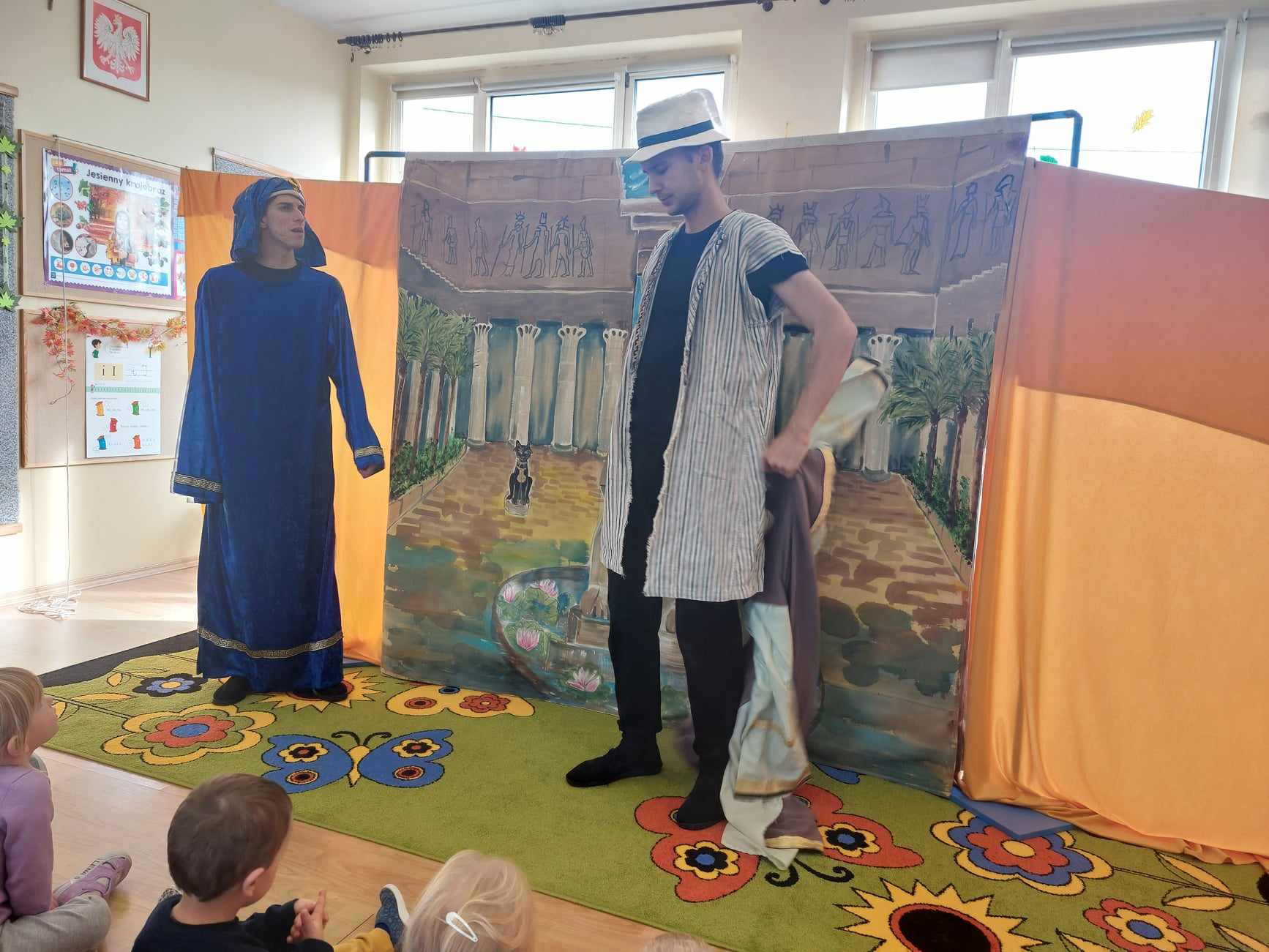 馃數Spektakl przenosi dzieci do upalnego Egiptu, a jego bohater to zdolny, pracowity i uczynny m艂odzieniec doceniany przez swojego ojca. Wywo艂uje to zazdro艣膰 u jego starszego brata, kt贸ry pragnie jedynie by膰 bogatym, nie wk艂adaj膮c w to 偶adnej pracy. Co wi臋cej, chce to osi膮gn膮膰 kosztem braciszka. Oszukuje go i podst臋pem zwabia do opuszczonej studni.