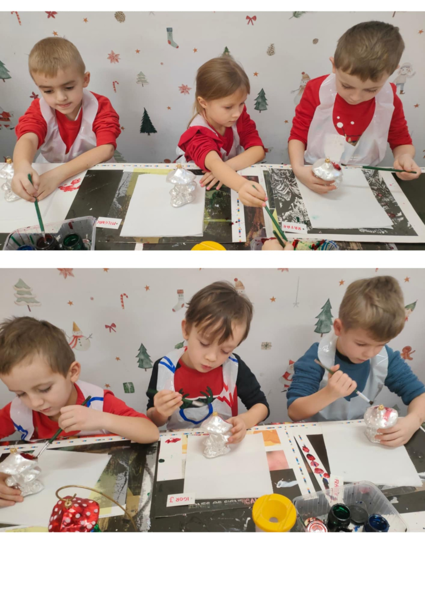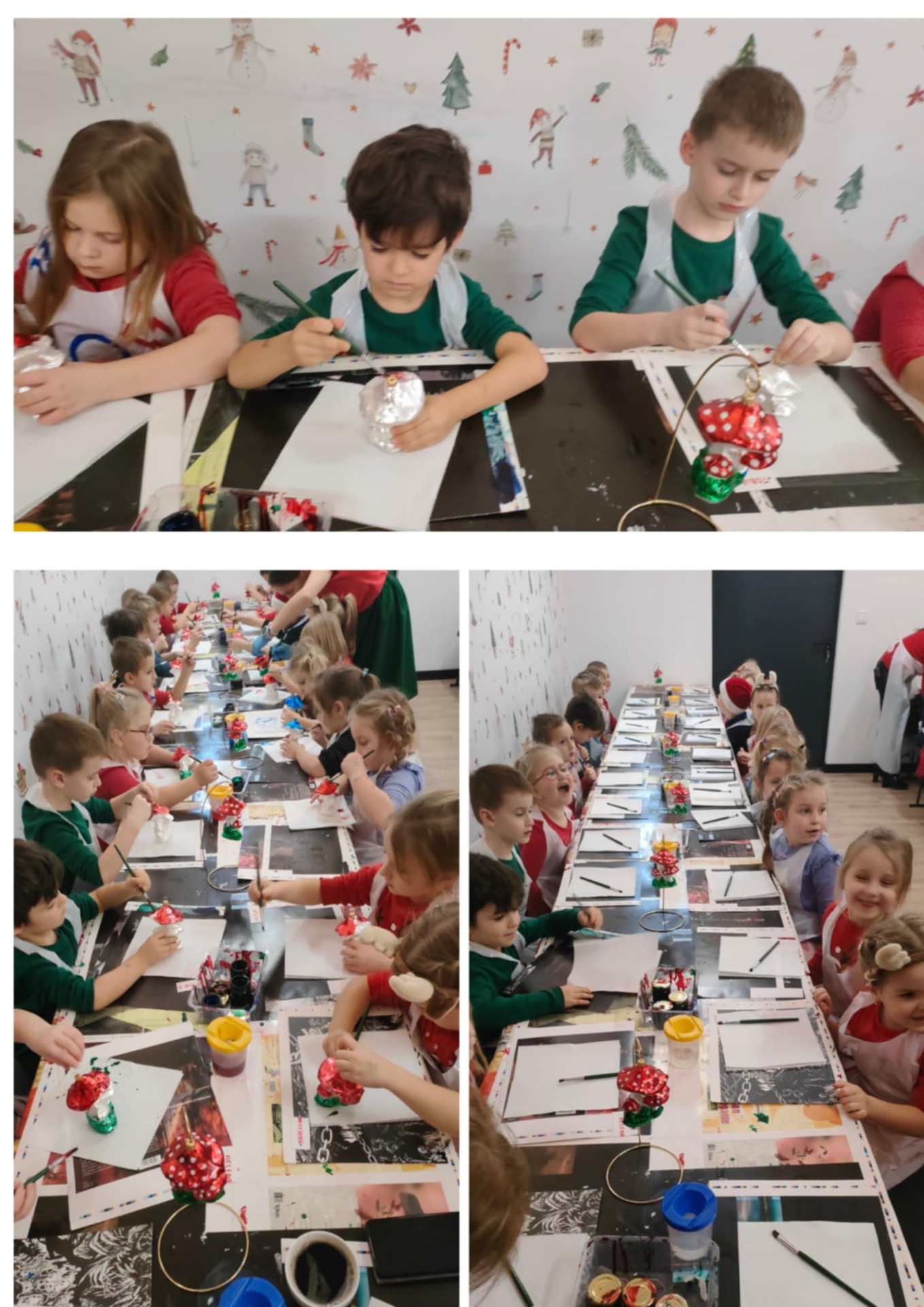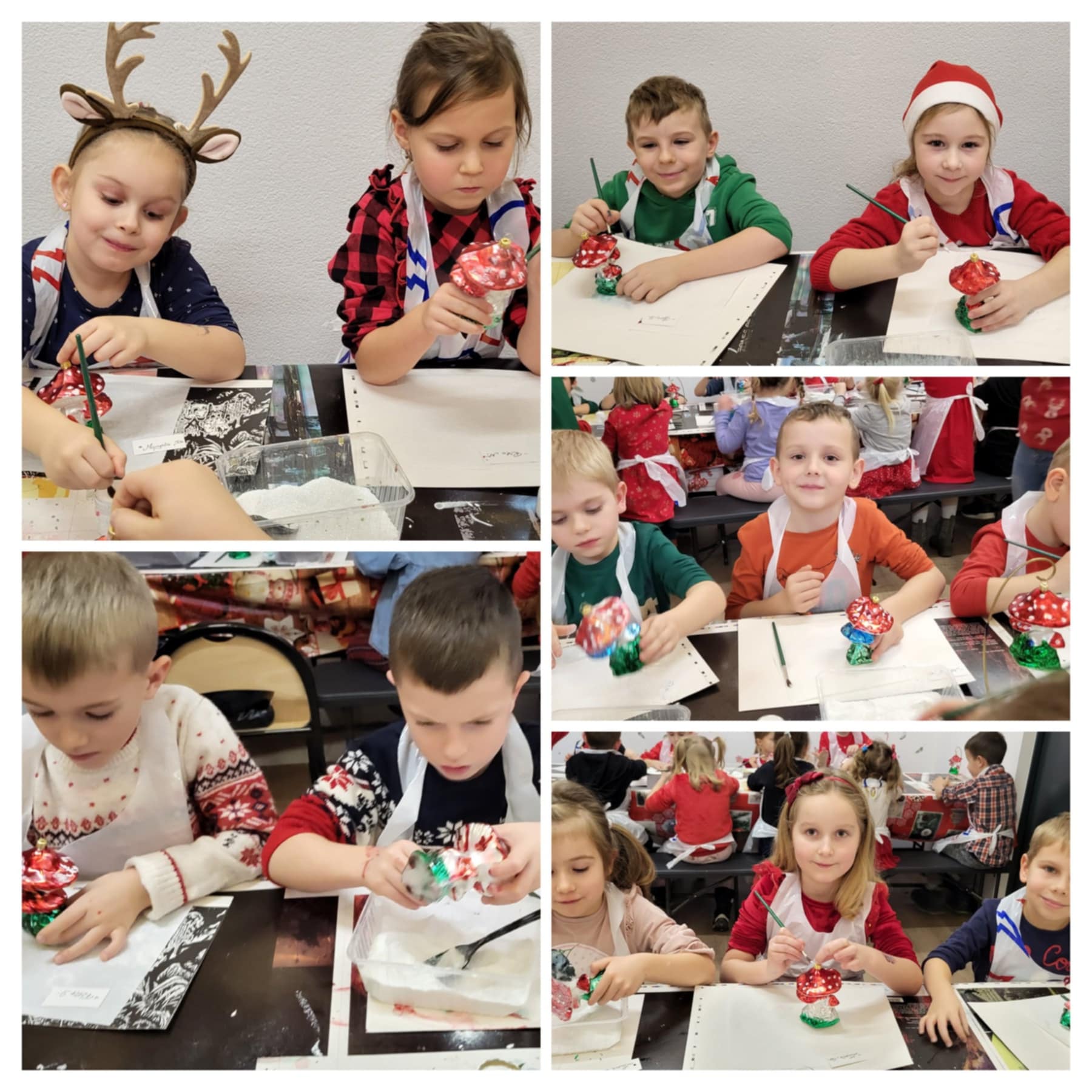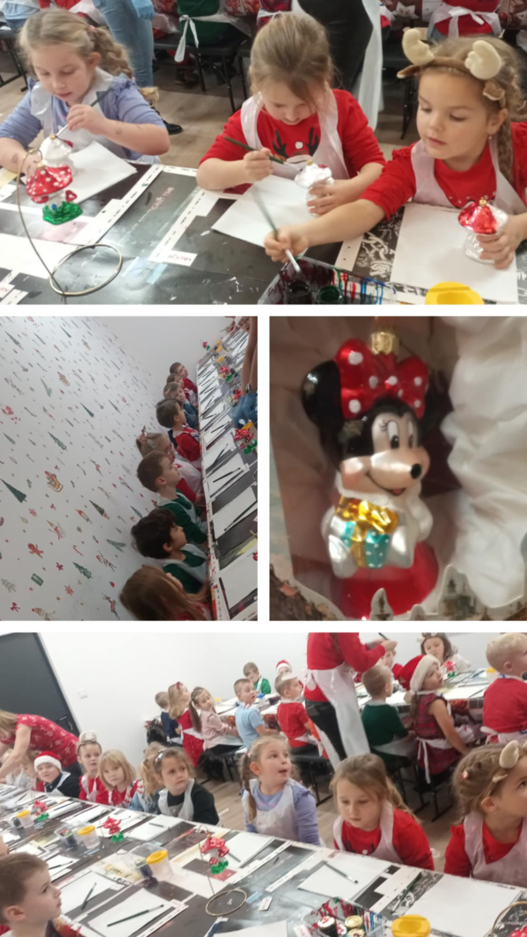馃搷 Najwi臋ksz膮 atrakcj膮 by艂o samodzielne malowanie i ozdabiane brokatem bombek, kt贸re nast臋pnie dzieci zabra艂y do domu.馃帹