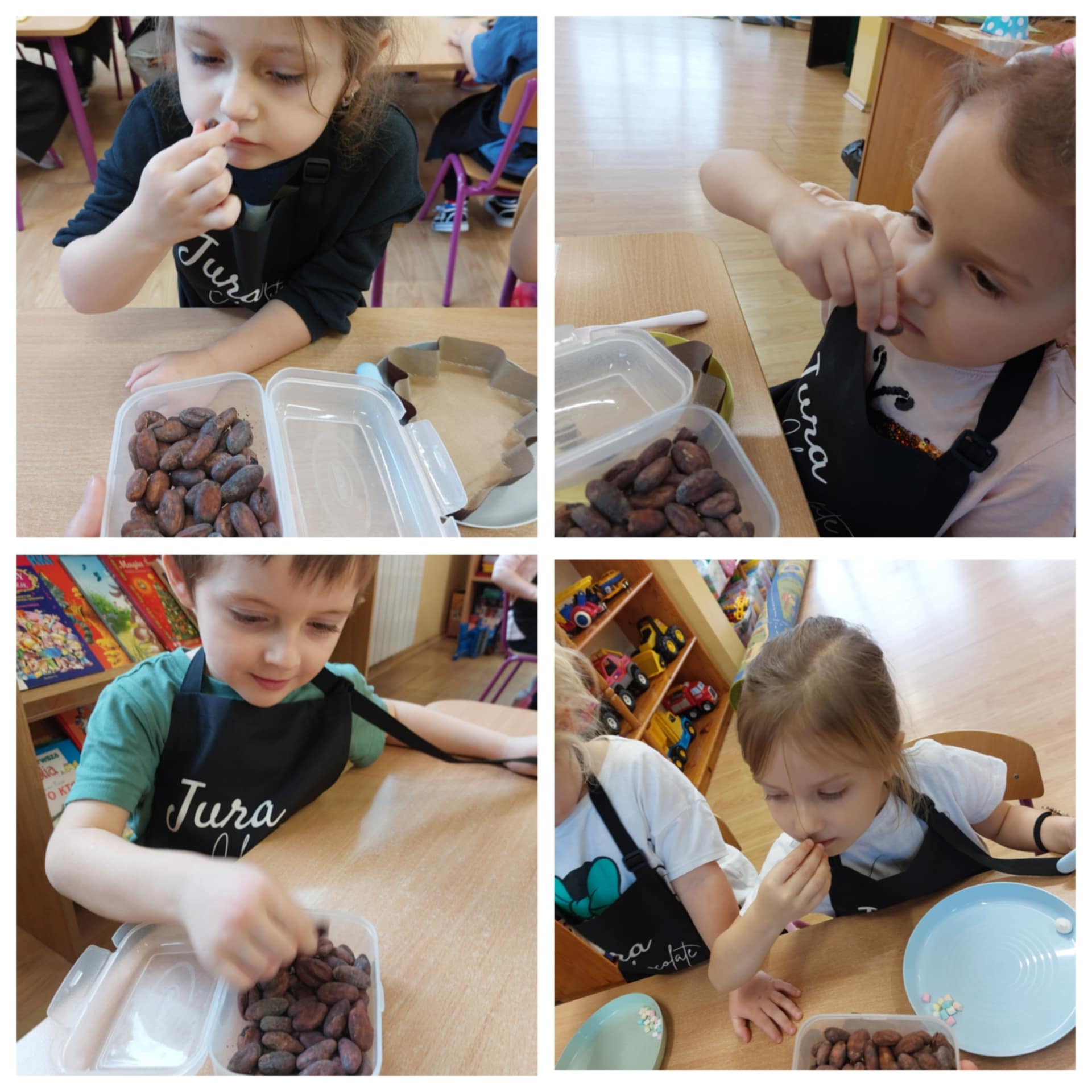 🟤Nasze przedszkole odwiedziła firma Jura Chocolate . Dzieci miały okazję dowiedzieć się jak powstaje czekolada – od malutkiego ziarenka do tabliczki czekolady, zobaczyć i powąchać prawdziwe ziarna kakaowca.