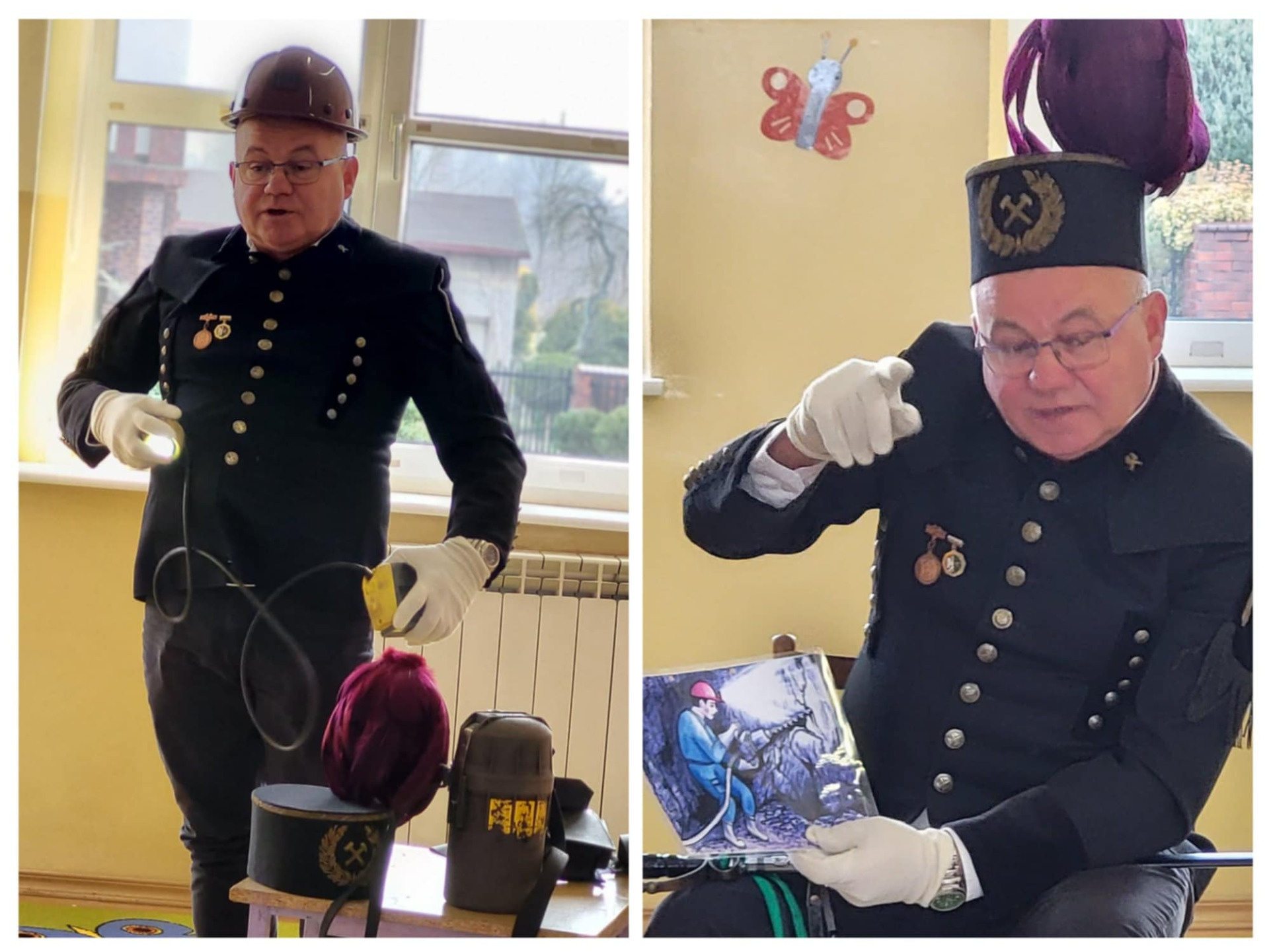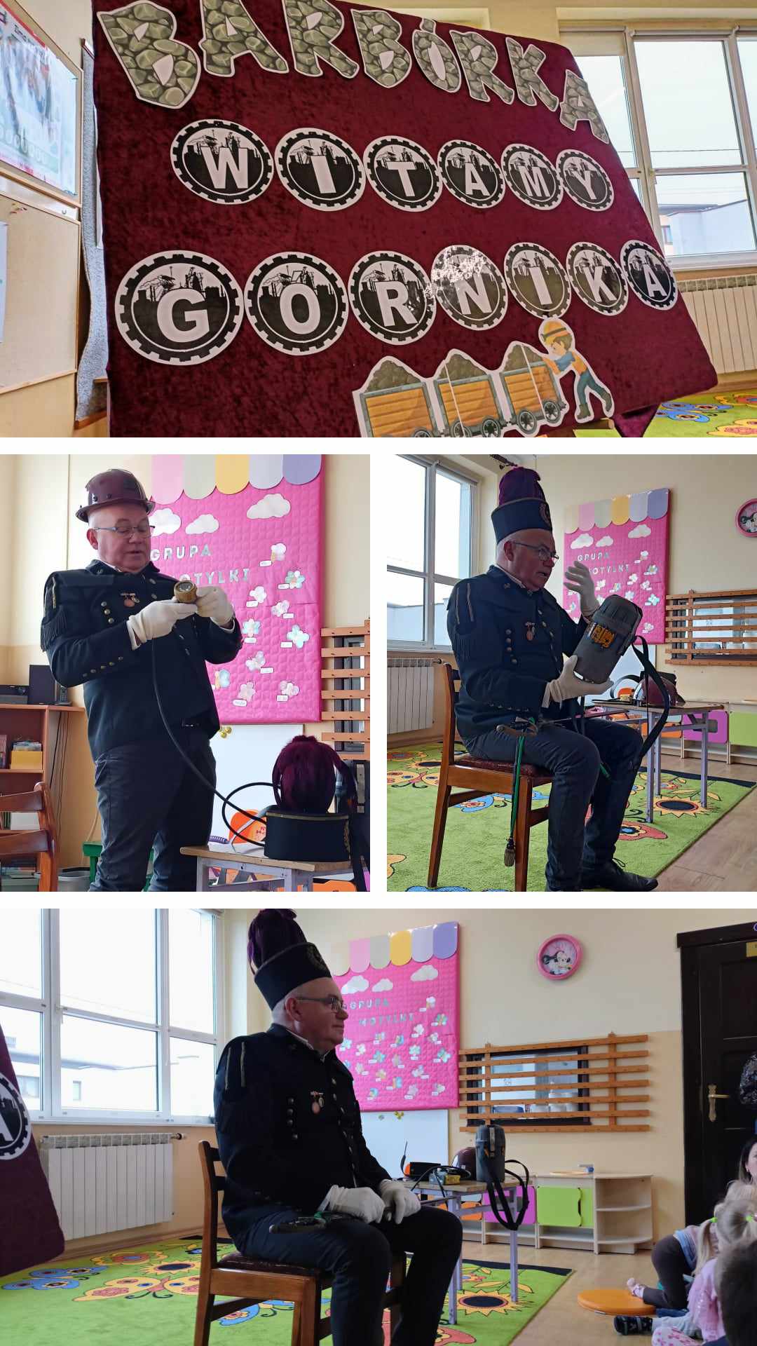 ⬛️Opowiedział przedszkolakom o pracy w kopalni, wyjaśnił znaczenie kolorów piór na górniczych czapkach oraz zaprezentował swój galowy strój.