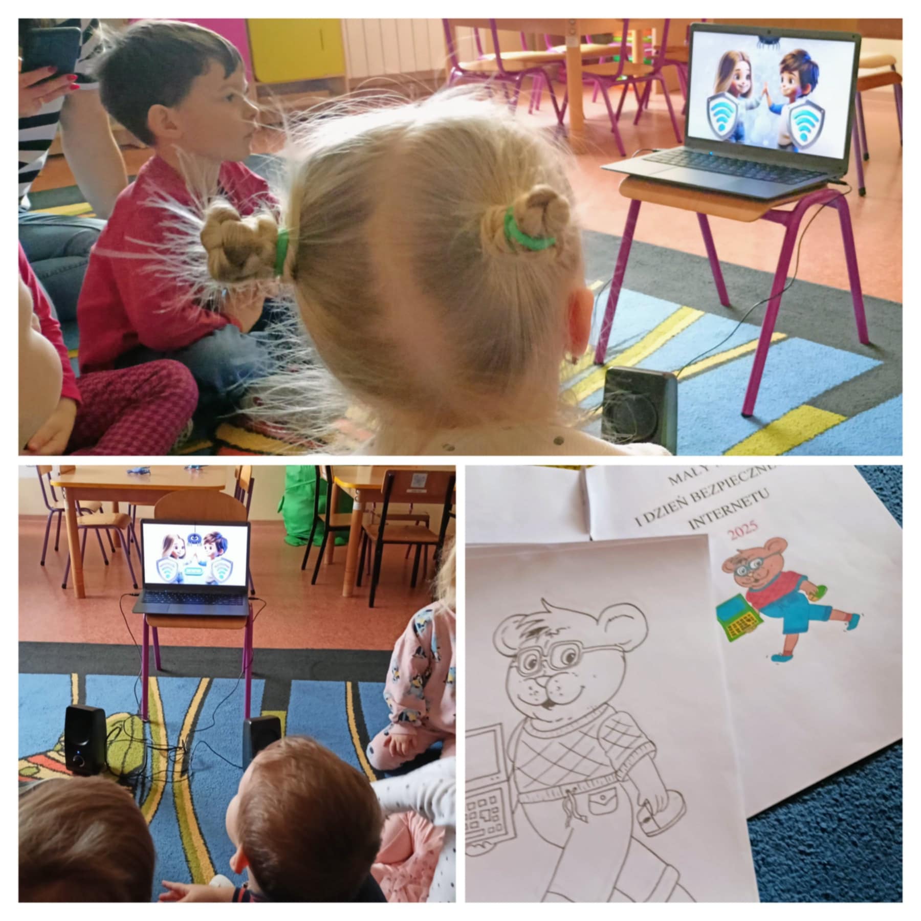 ☑️Była to okazja do przeprowadzenia pogadanek z dziećmi na temat zasad bezpiecznego, odpowiedzialnego i świadomego korzystania z nowoczesnych technologii. Podczas zajęć dzieci rozmawiały o tym, jakie zagrożenia mogą czekać w sieci, ale także
