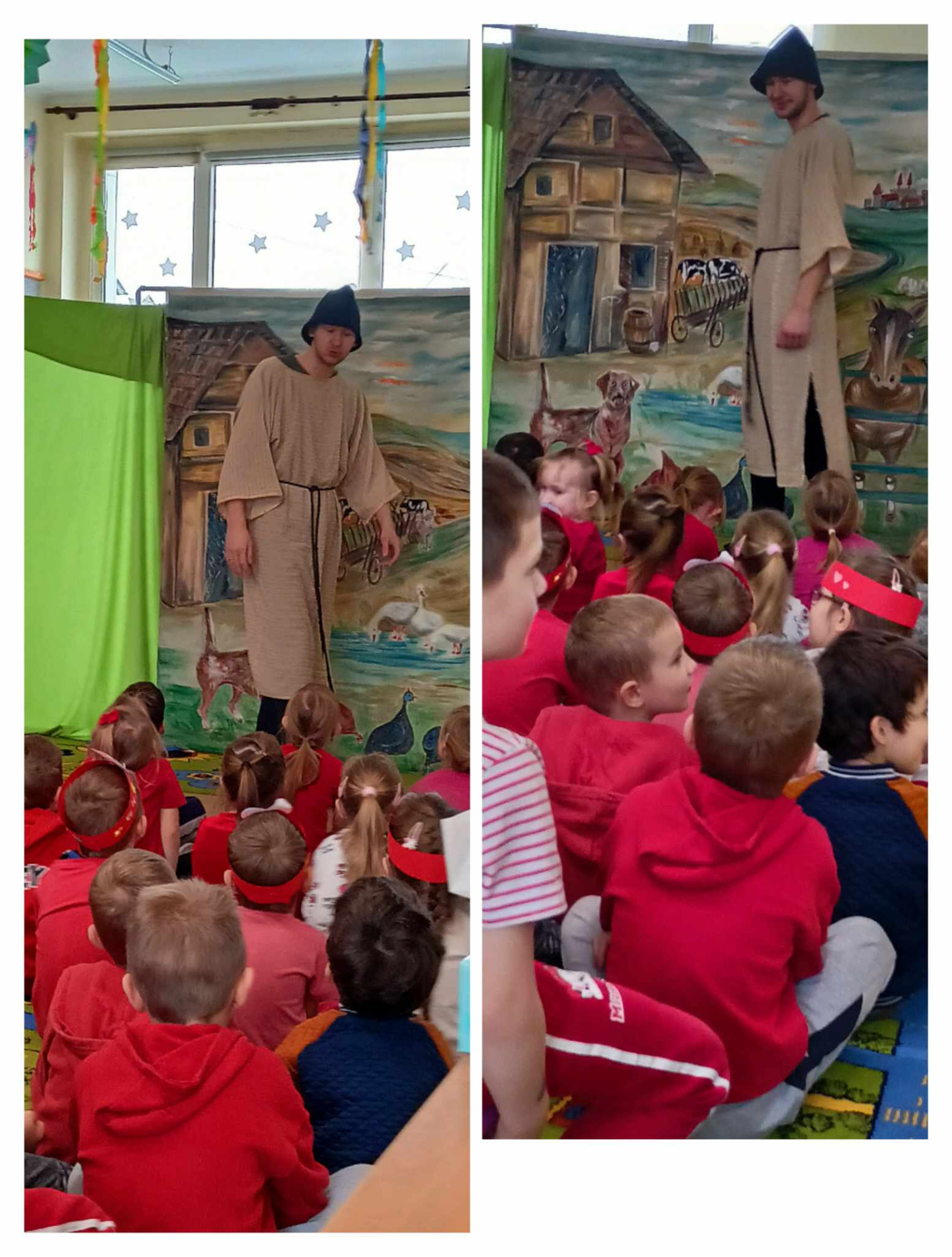 🔵Dzieci miały okazję obejrzeć pełen humoru spektakl teatralny oparty na znanej przypowieści o synu marnotrawnym. Spektakl wyjaśnia dzieciom, że prawdziwym skarbem jest rodzina oraz miłość, uczy posłuszeństwa wobec rodziców, tłumaczy również, że nie szata zdobi człowieka oraz tłumaczy kim jest prawdziwy przyjaciel.