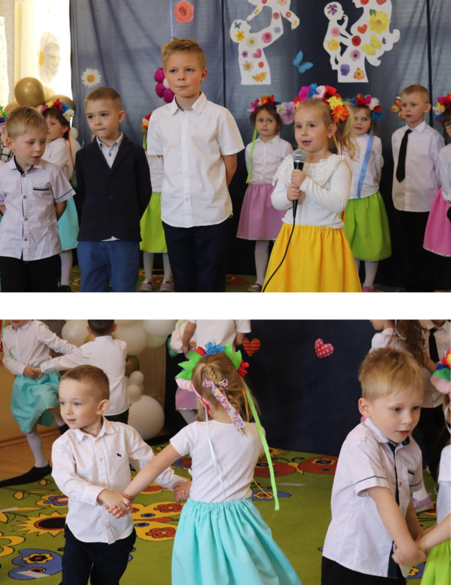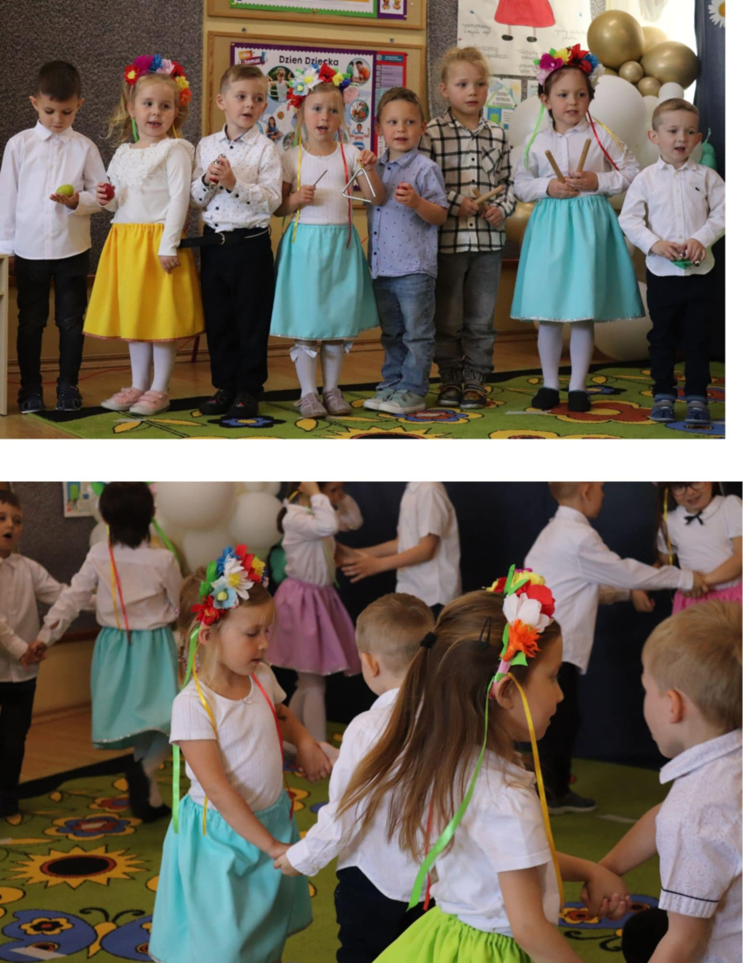 Z tej okazji przedszkolaki śpiewały piosenki, grały na instrumentach, a także z wielkim zaangażowaniem zatańczyły wesołą polkę. 🎤🪇💃