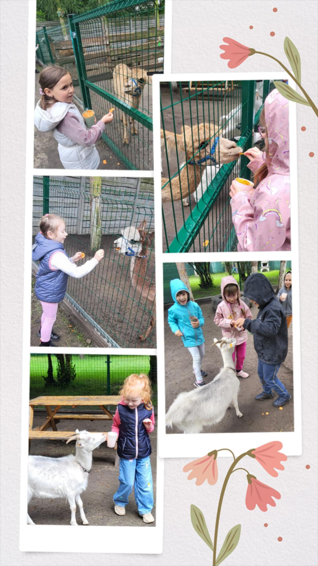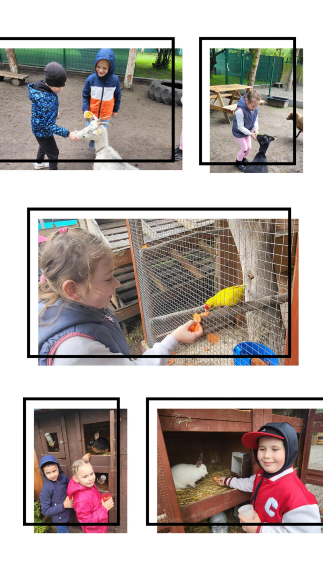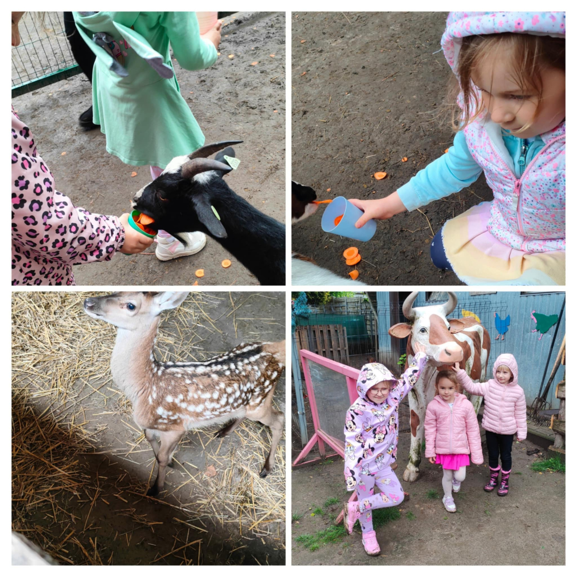Każdy otrzymał kubek z karmą i został poinstruowany, w jaki sposób karmić poszczególne zwierzęta. Dla niektórych była to okazja do przełamywania lęku przed głaskaniem zwierząt, ale jak się okazało był on niepotrzebny, gdyż zwierzęta z "Przytuliska" były przyjaźnie nastawione do naszych najmłodszych. 🥰