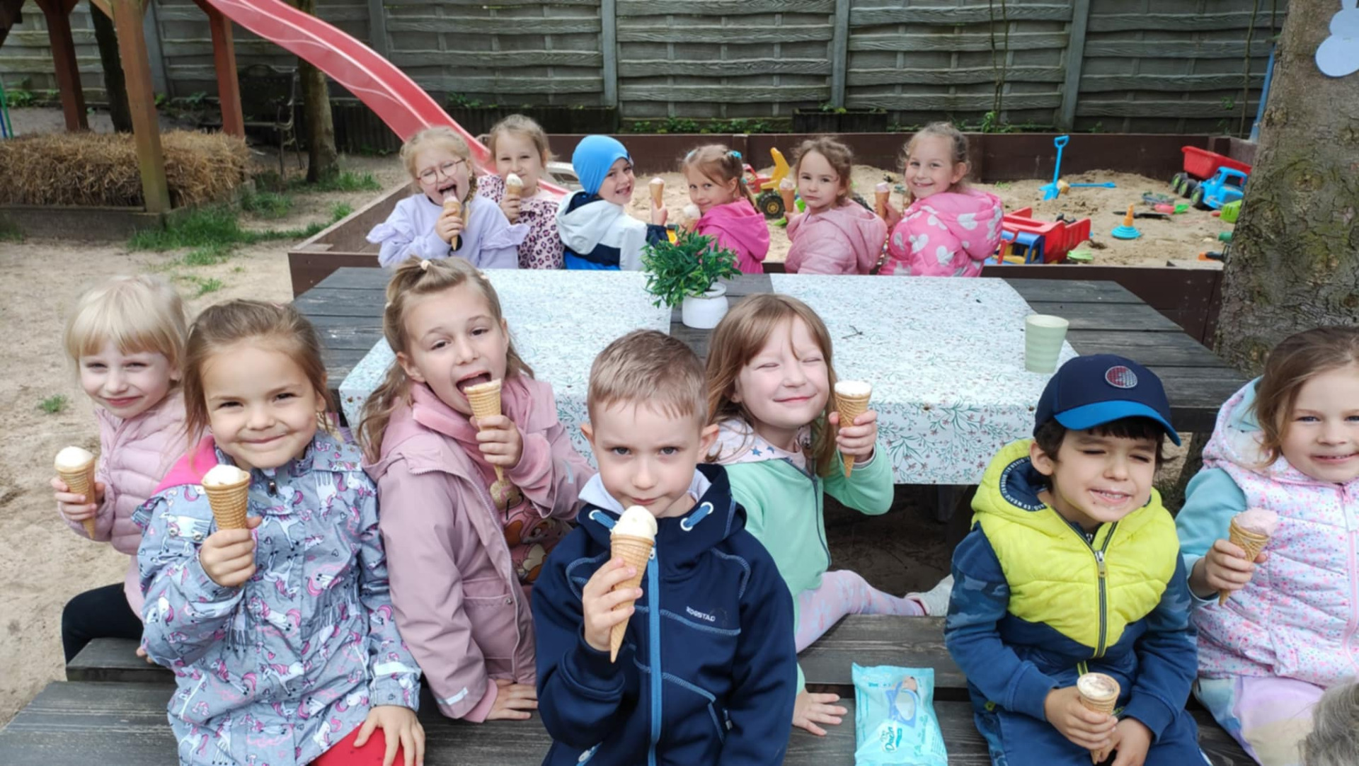 🟡Następnie na przedszkolaków czekały aromatyczne kiełbaski z grilla, a na deser - lody. 🍦