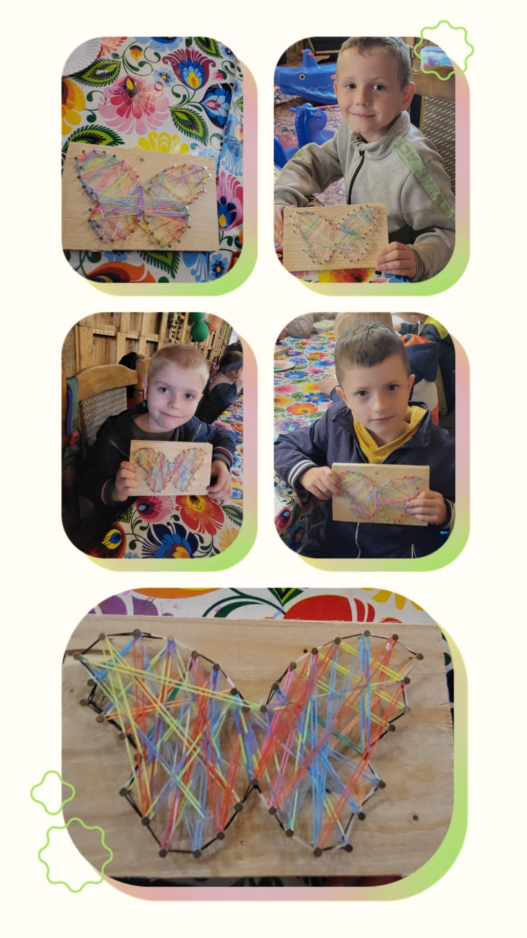 🟡Kolejnym punktem wycieczki były warsztaty plastyczne. Dzieci wykonały kolorowe motyle metodą string art. Jest to metoda, która wymaga skupienia i koncentracji, co może pomóc w poprawie zdolności poznawczych i umiejętności skupienia uwagi.🦋👀✋